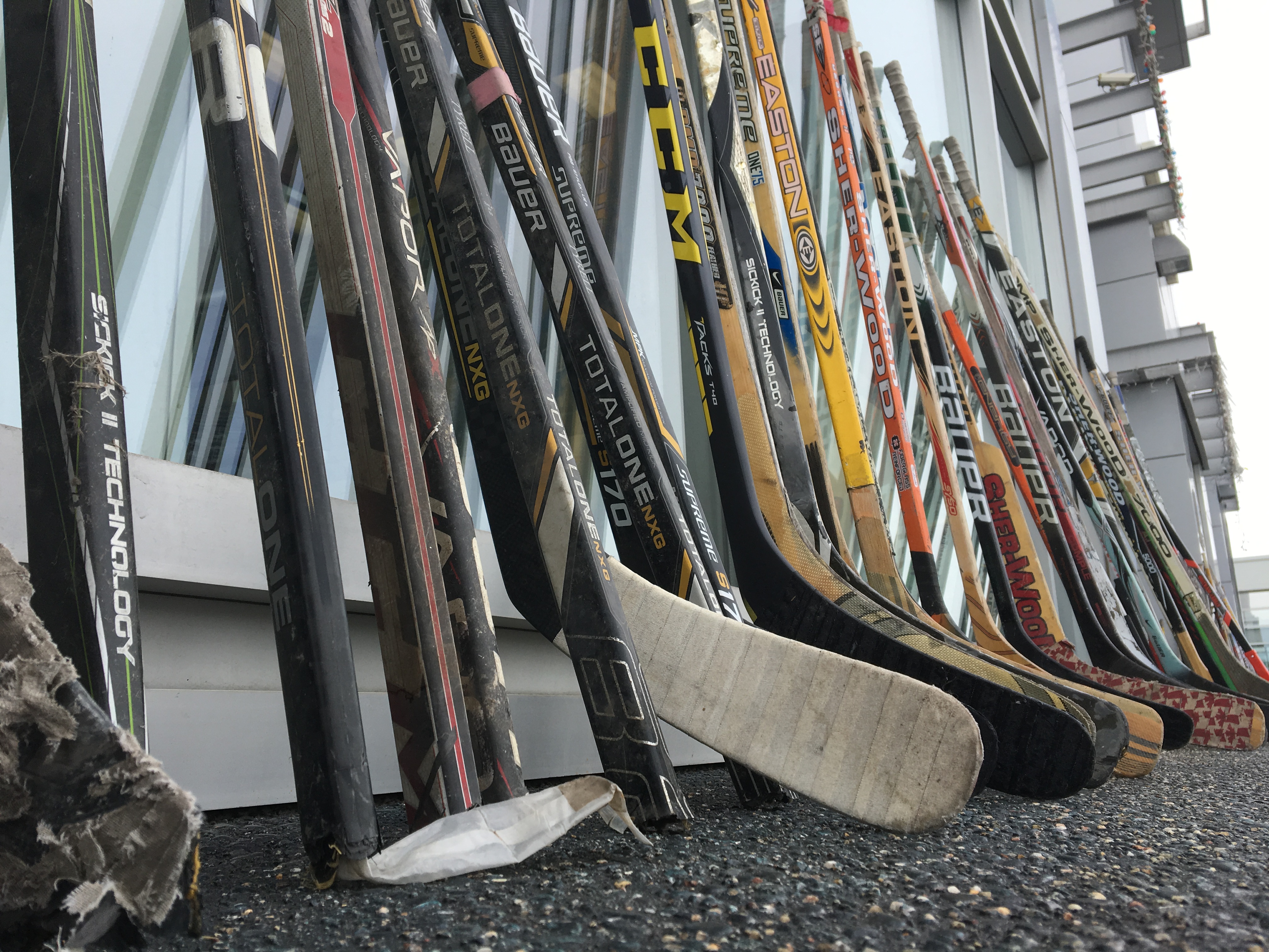 By the noon hour on Tuesday, more than 300 sticks were brought to the lot. Among the people giving up their own hockey sticks were two boys who knew some of the bus crash victims.