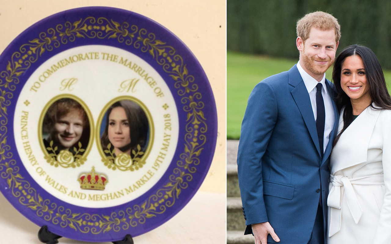 A commemorative royal wedding plate has surfaced on Etsy ahead of Prince Harry and Meghan Markle’s royal wedding but the plate features a different British redhead: singer-songwriter Ed Sheeran.