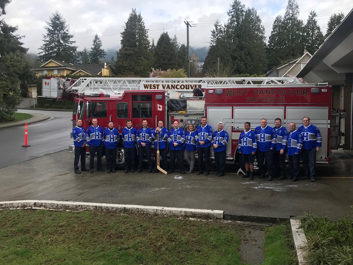 West Vancouver Firefighters supporting the Humboldt Broncos. Our thoughts and prayers are with you.#jerseysforhumbolt. @GlobalBC @WestVanDistrict #humboldtsrong #HumboltBroncos pic.twitter.com/qw4YrwZ06q