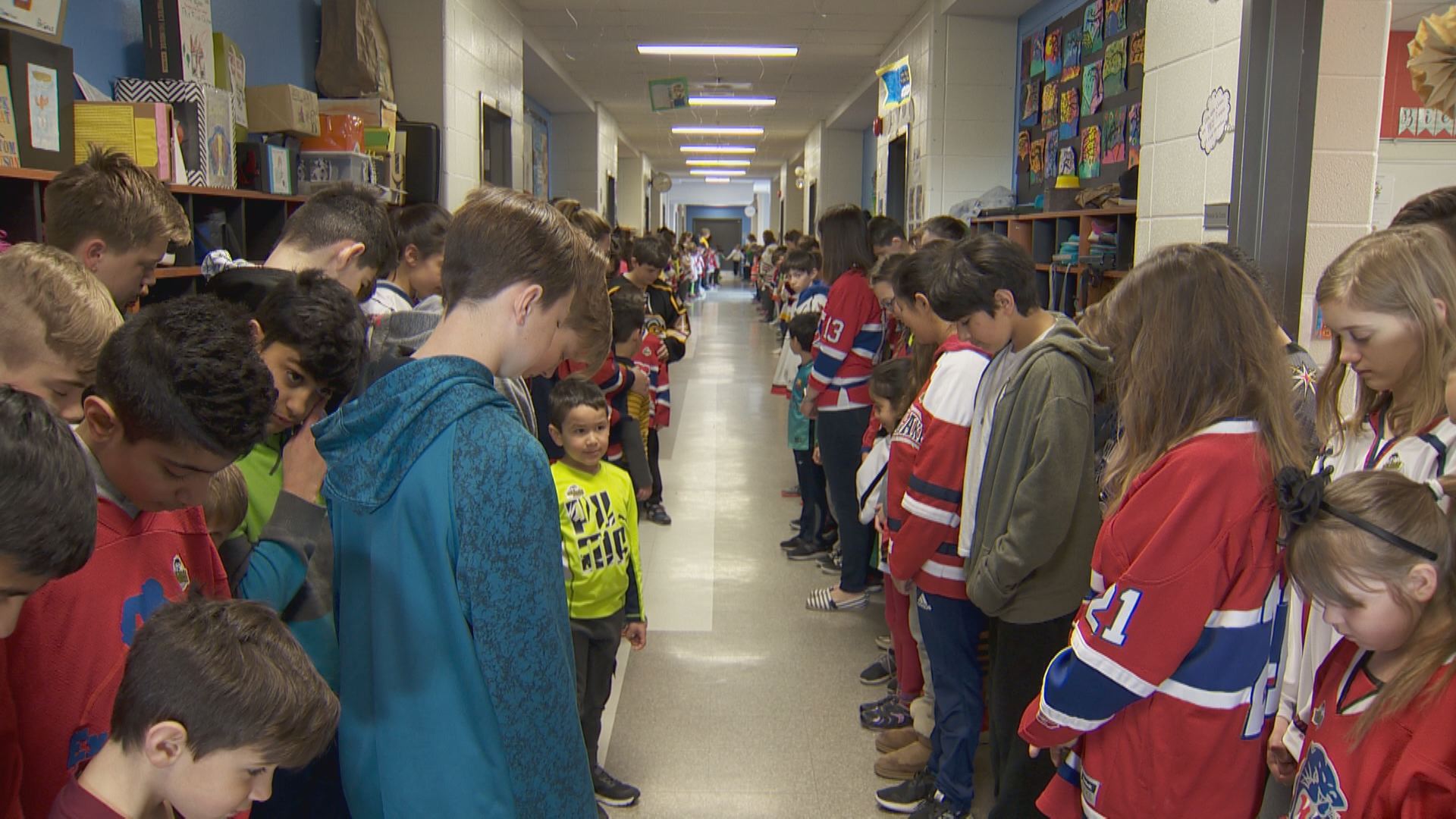 It’s Thursday morning at Margaret Manson Elementary in Kirkland, in Montreal’s West Island, and hundreds of students are standing in complete silence to remember those who died in the Humboldt Broncos bus crash.