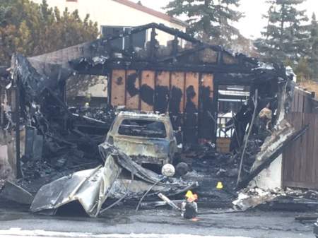 The man opened fire when officers tried to arrest him and ran into a neighbourhood garage that was later engulfed in flames, they said.