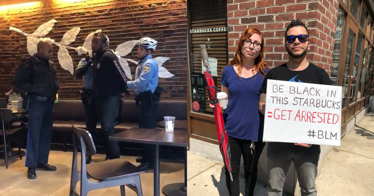 “The police were called because these men hadn’t ordered anything. They were waiting for a friend to show up, who did as they were taken out in handcuffs for doing nothing. All the other white ppl are wondering why it’s never happened to us when we do the same thing,” the video’s caption reads.