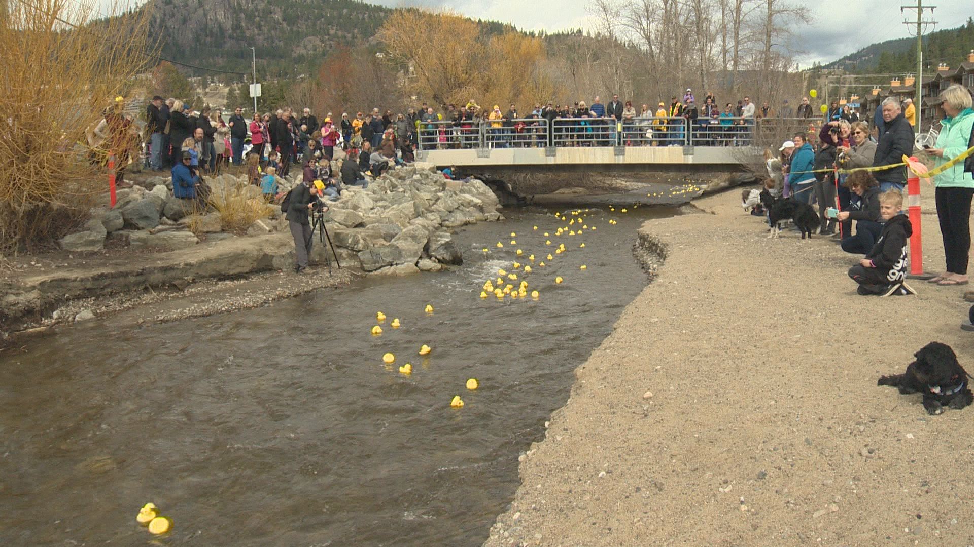 Dozens of rubber duckies raced down a creek in Peachland on Saturday to help the bats.