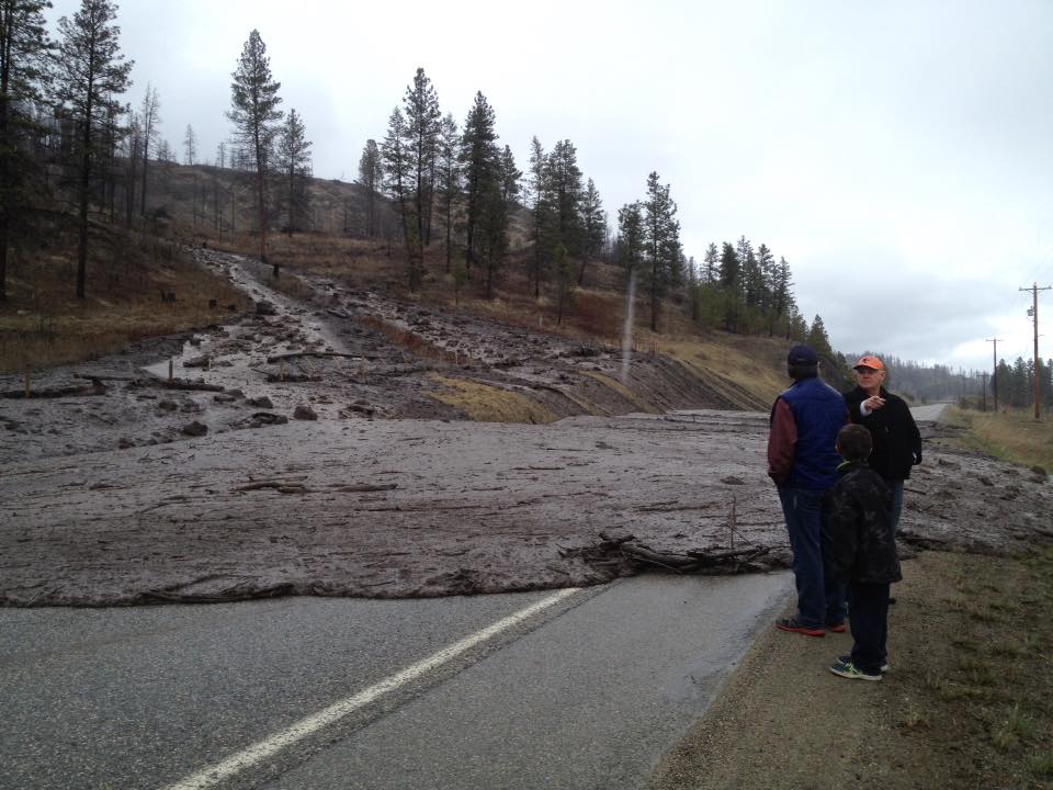 A mudslide two kilometres north of Rock Creek closed Highway 33 in both directions for a couple of hours.
