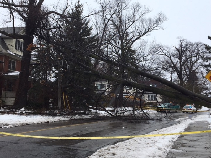 The ice storm, strong wind gusts and heavy rainfall have caused widespread power outages, brought down trees and even closed a major attraction in Toronto.