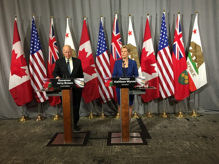 TORONTO – Scrapping Ontario’s cap-and-trade system would make no sense, the governor of California said Monday as he weighed in on a key Ontario election issue.