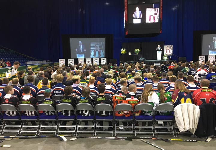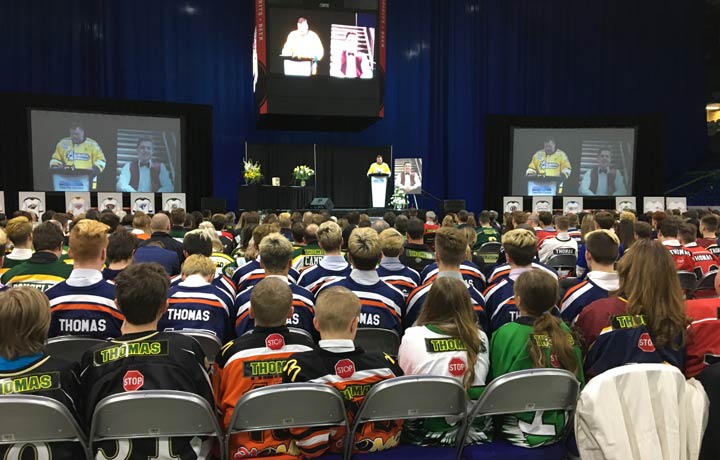 People could be seen pouring into the arena wearing hockey jerseys from a number of teams but they were all Bronco fans Monday as they honoured Thomas.