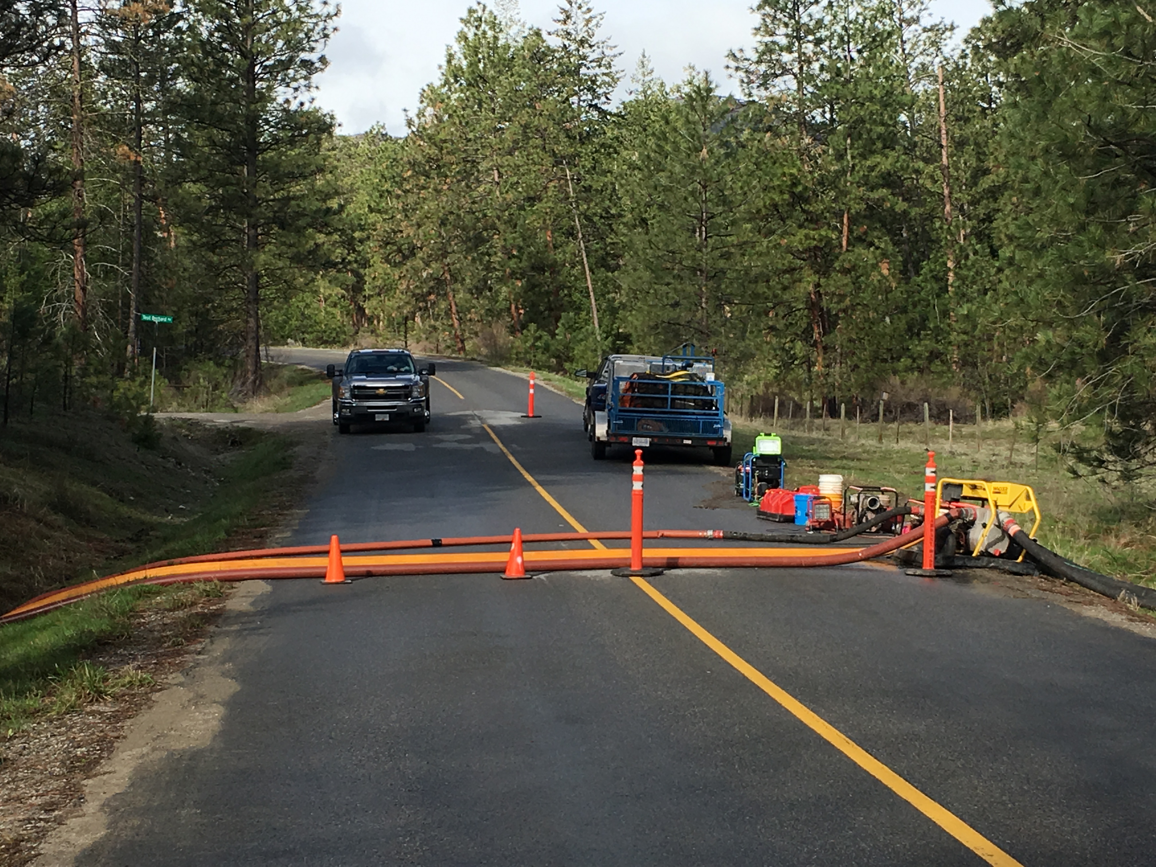 Since Monday evening the province has been pumping water across Secrest Hill Road near Oliver in an effort to prevent the failure of a dam and culvert system.