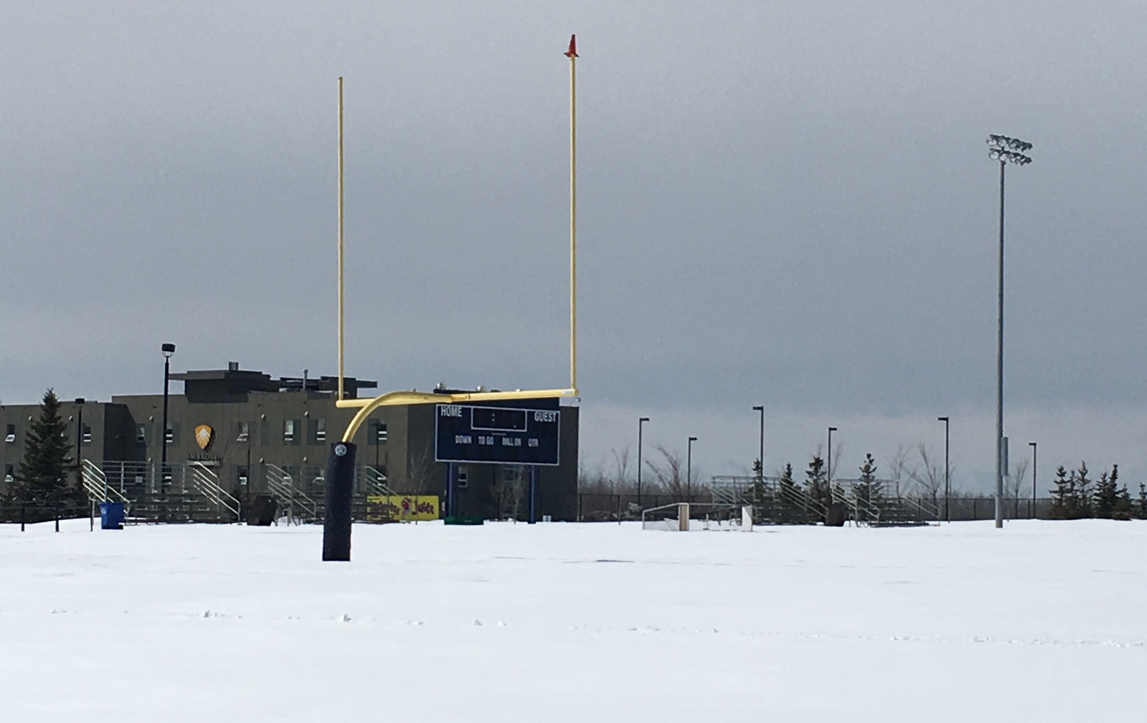 Officials at Ernest Manning would like the City of Calgary to come and remove the snow and get the kids back on the field. The city says that could damage the turf and that Mother Nature will have to remove it, which of course, will take longer.