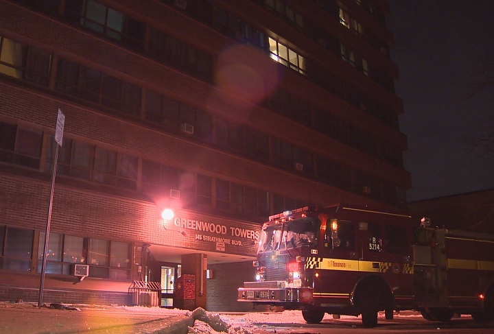 Toronto Fire Services said they responded to a call around 3:35 a.m. on Wednesday at Greenwood Towers at 145 Strathmore Boulevard near Danforth Avenue and Greenwood Avenue in East York.