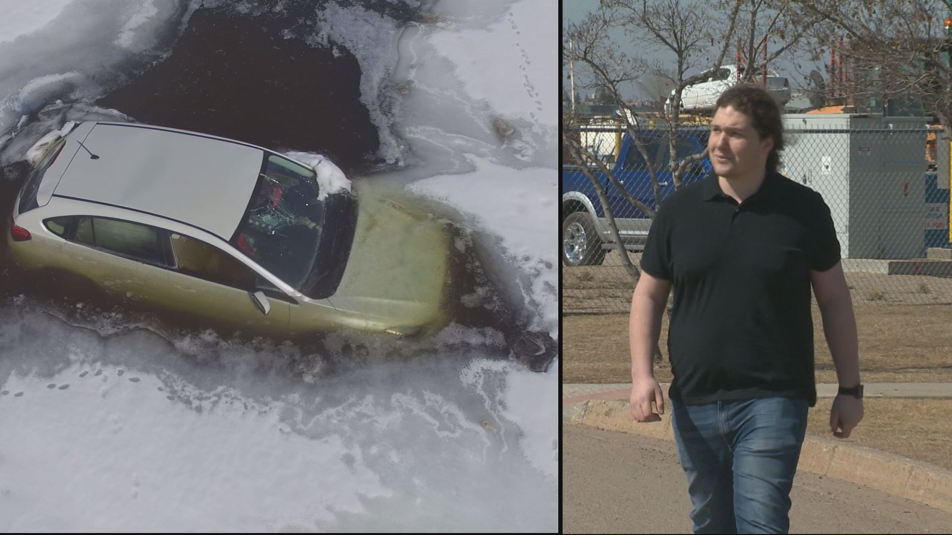 “It looked like I was going over a snow bank and I heard this crunching that I’ve never heard before driving on the ice and my vehicle stopped,” Lewis said. “My first reaction was ‘get out of the vehicle.'”