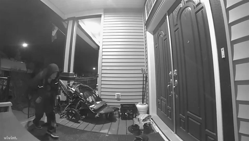 Surveillance cameras captured someone in a hoodie walking up to a doorstep near 269 Street and 26A Avenue around 2:30 a.m. Saturday.