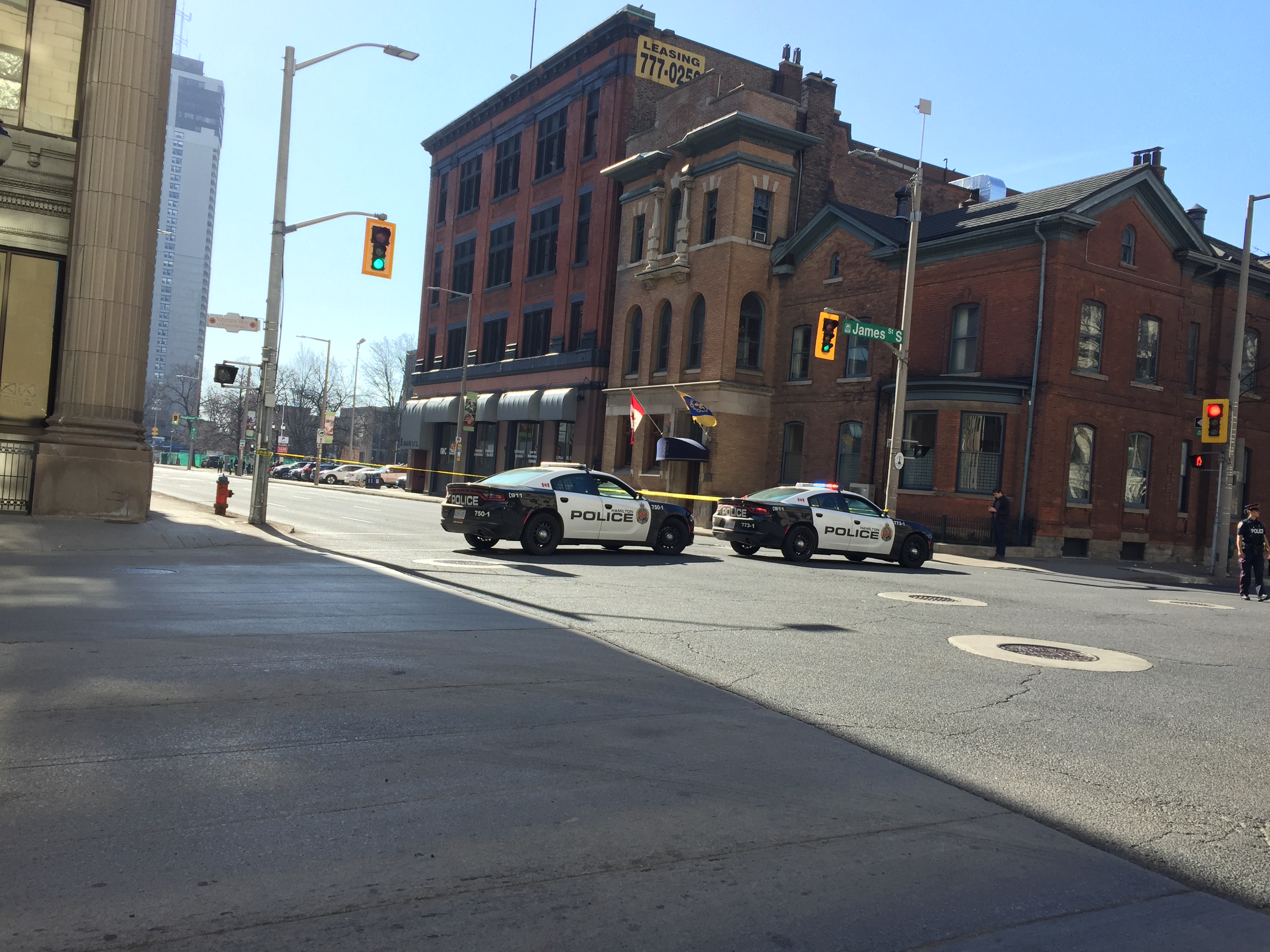 As a precaution, officers had blocked off Main Street East between between James and John streets.