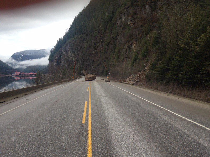 MacDonald said the larger boulder that blocked the highway near Three Valley Gap west of Revelstoke came crashing down just after he passed the scene, but it hit close to home.