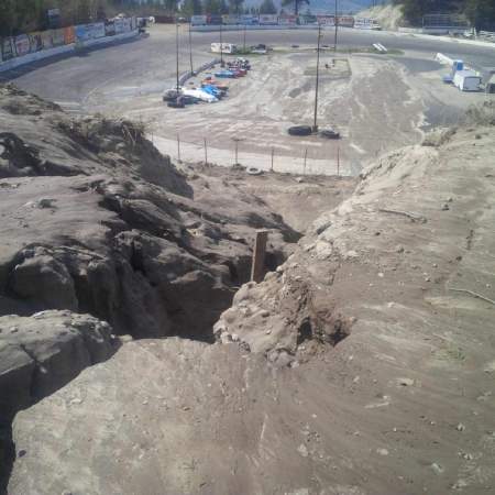 Owner Johnny Aantjes said a large area of a slope above the track gave way, taking out trees and displacing water near the tailgating area which then flooded into the tailgate section and on to the racetrack.