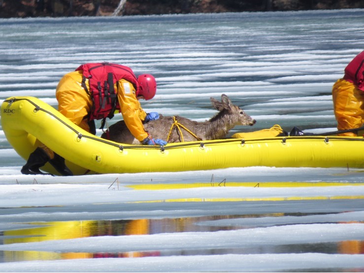 Teefy estimates it took the duo about 45 minutes to pull the deer out of the icy water, several times using a paddle to break up the ice.