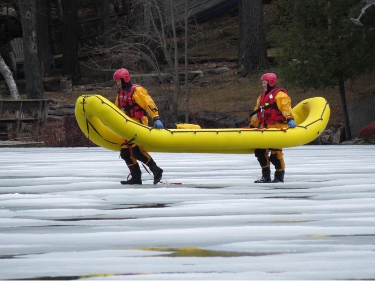 He and other residents called the North Kawartha Fire and Rescue Services. Firefighters arrived within minutes and deployed an inflatable raft and two of them — siblings Ryan and Katie Donohoe — walked out onto the ice and then launched the raft.
