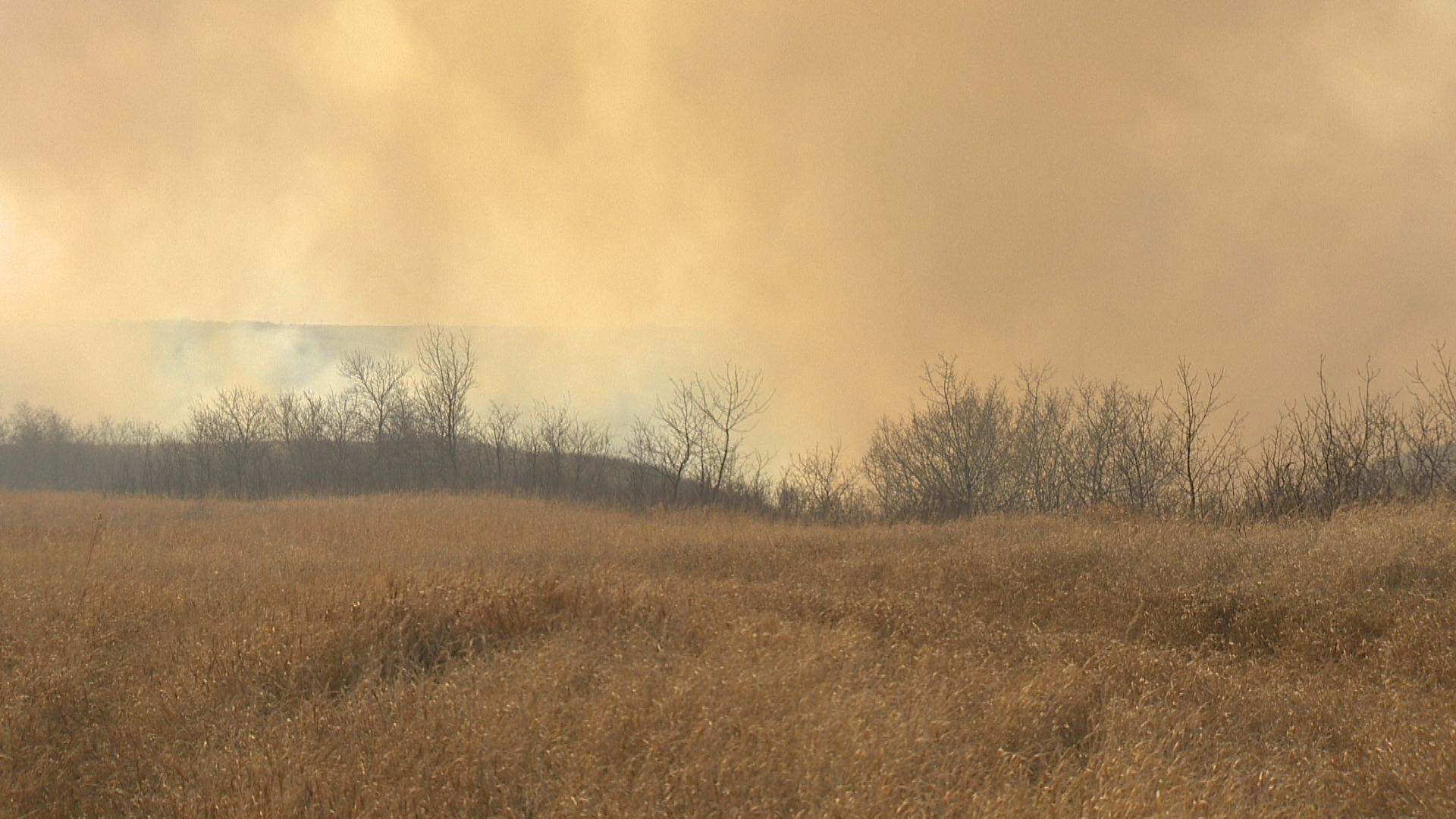 Smoke was visible in the Regina area for much of Thursday evening as firefighters battled an extensive grass fire north of the city, all while a second fire destroyed a big historic red barn nearby.