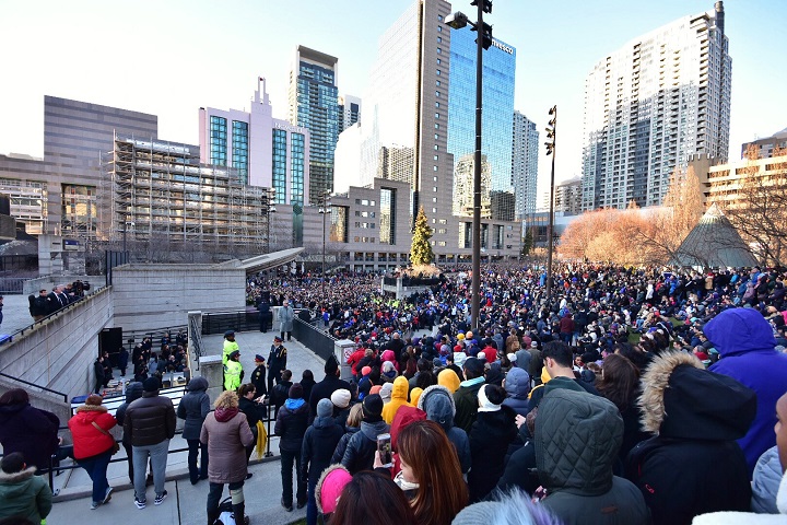 The thousands in attendance, with the help of students from Earl Haig Secondary School & Cardinal Carter Academy for the Arts, sang O Canada to close out the event.