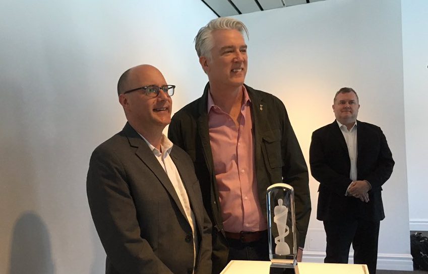 “I never thought I’d be holding one of these,” Brown told a small crowd gathered at Museum London, as Reid passed him the statuette.