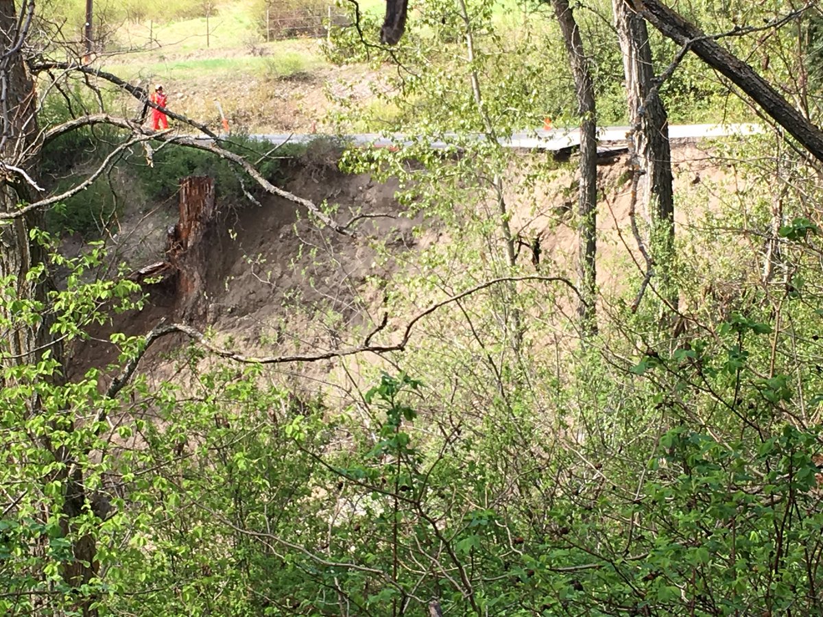 Part of the road, on the west side of Okanagan Lake, caved in around 9:30 a.m. Tuesday, but problems were identified on Monday.