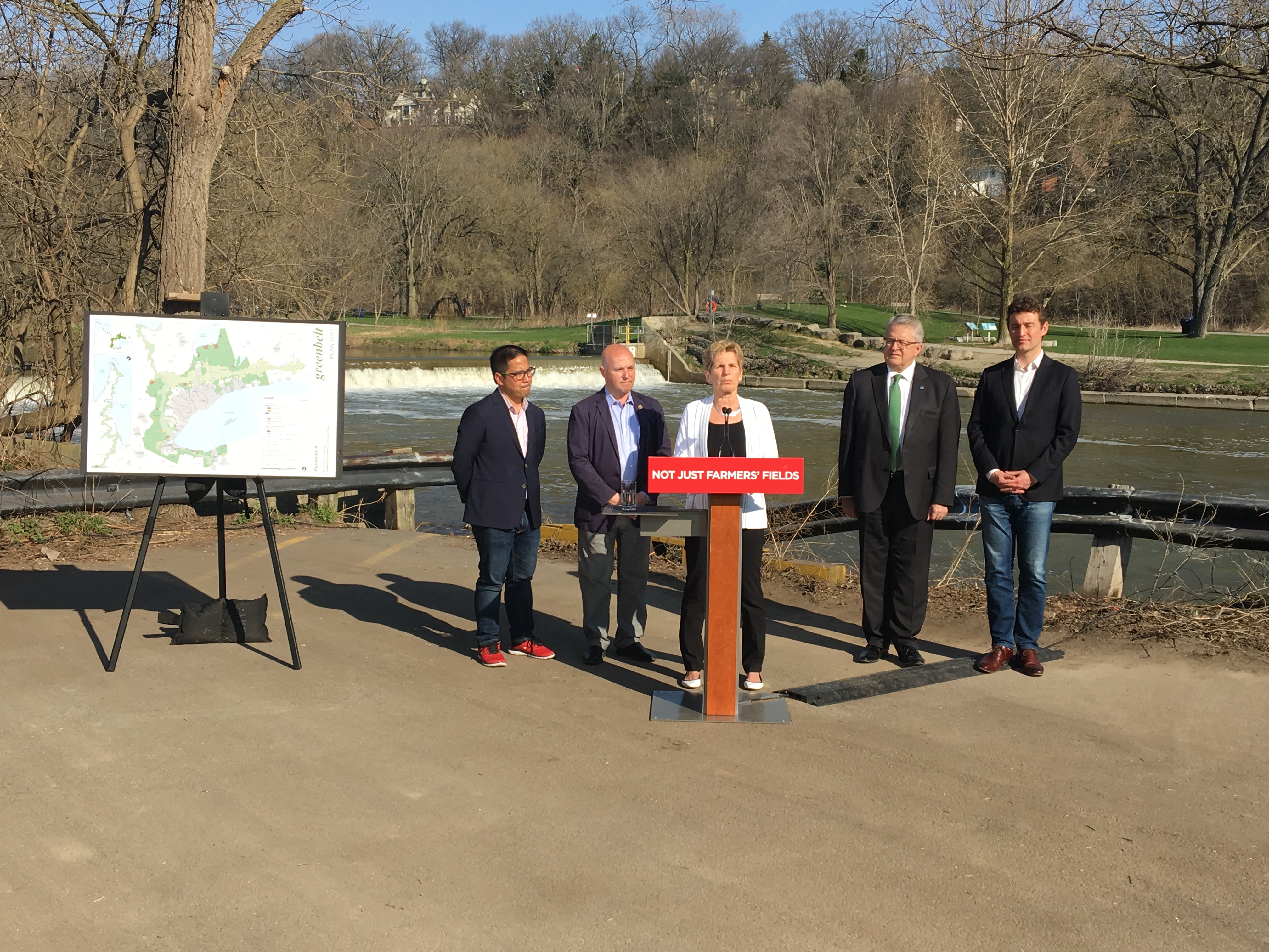 Wynne pledged to extend the Greenbelt into ecologically sensitive areas such as the Orangeville and Oro moraines and the Nottawasaga River corridor, saying the areas have already been put to community consultation.