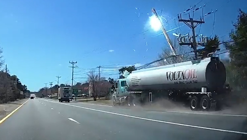 Massachusetts authorities released dash cam video of the April 21 incident, which shows the truck veering across a two-lane highway, driving onto the shoulder and slamming into an electrical pole, causing a transformer to explode.