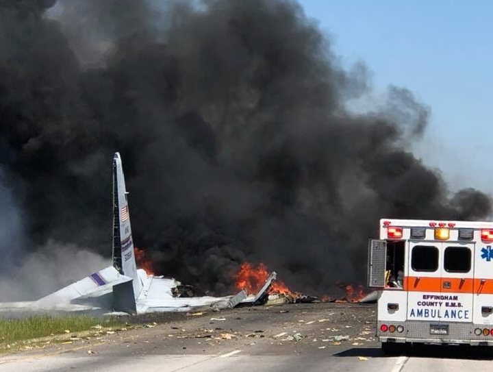 A photo tweeted by the Savannah Professional Firefighters Association shows the tail end of a plane and a field of flames and black smoke as an ambulance stood nearby.