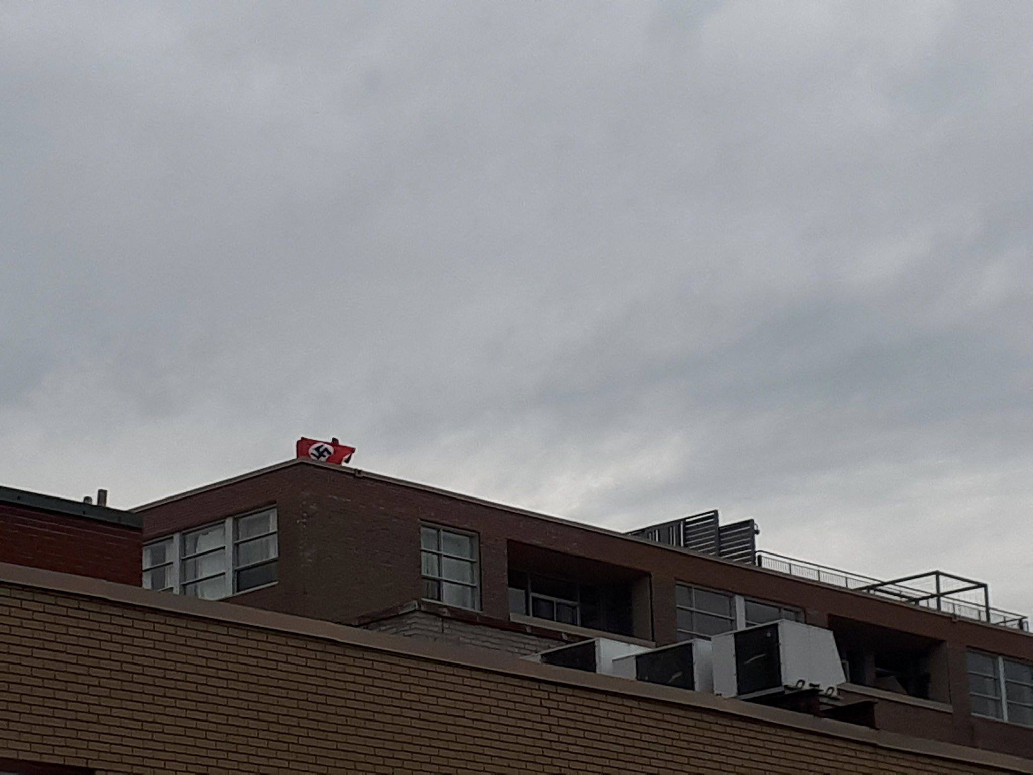 City police were notified after a picture of a man brandishing the flag from the roof of a condo building was posted on the Parc-Ex Action Squad, a Facebook page for a neighbourhood group.