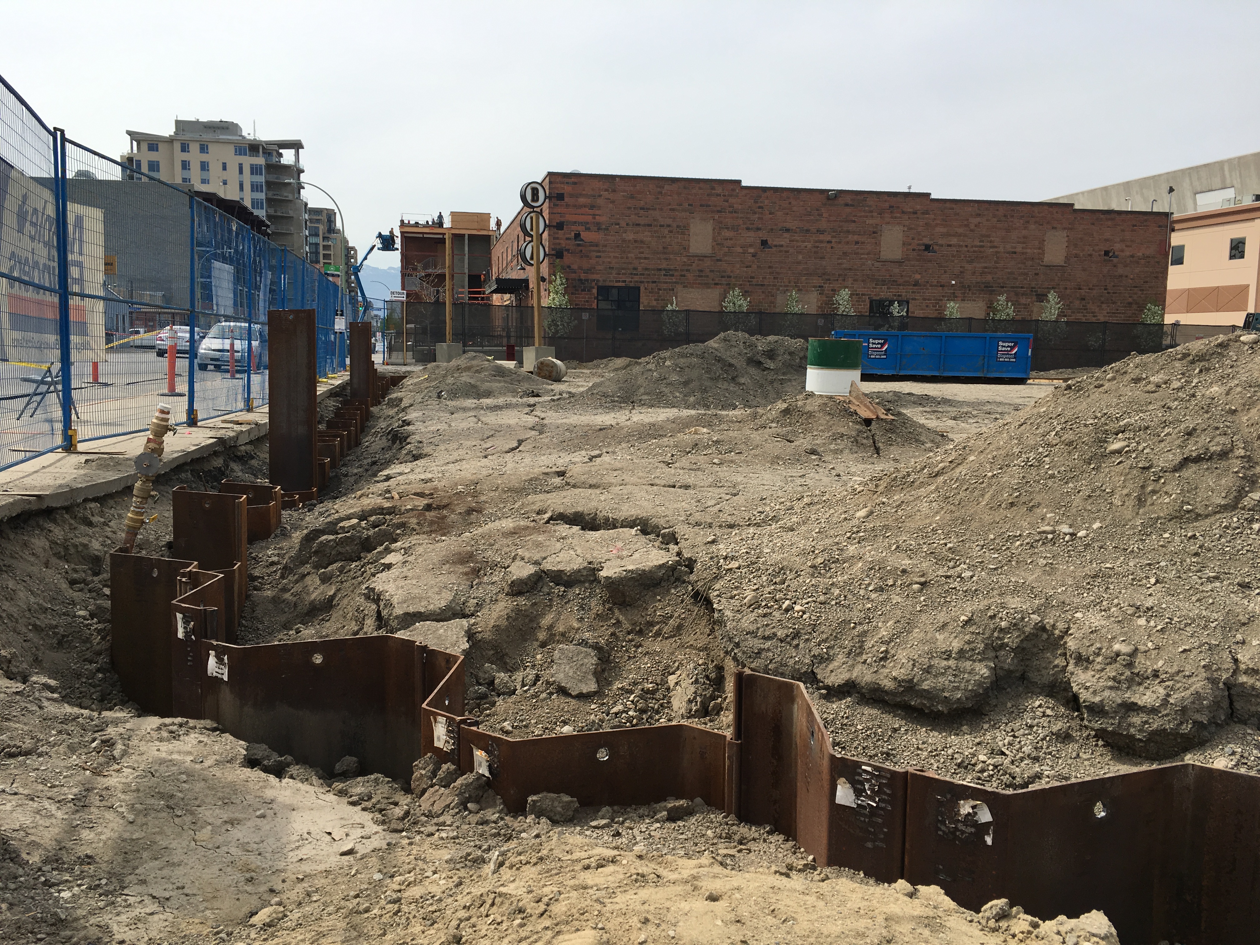 Work on a downtown Kelowna condominium tower has ground to a halt because of unauthorized ground work.