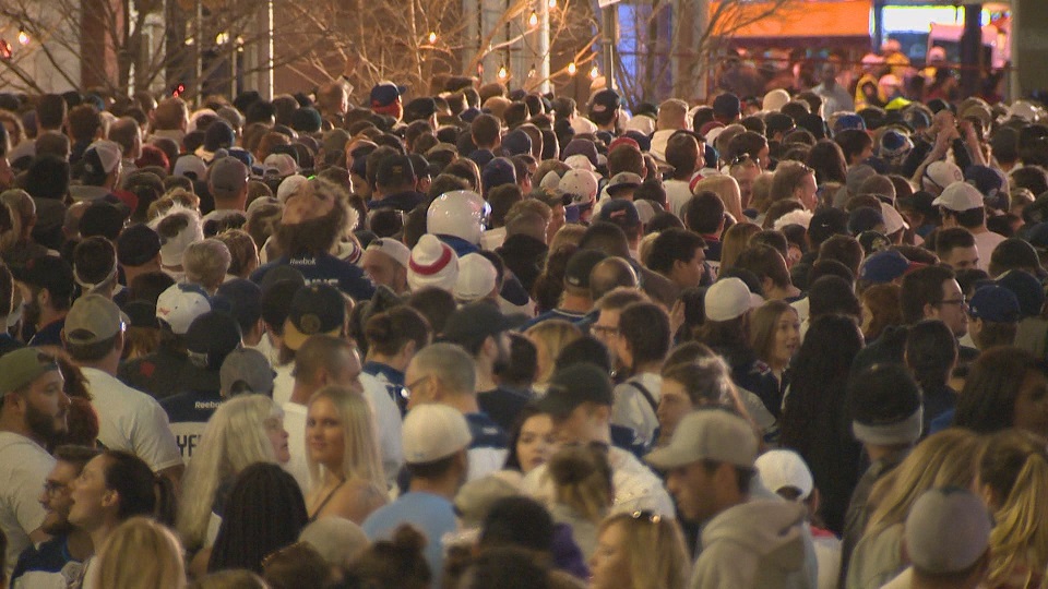 Winnipeg Police wouldn’t go into specifics about their numbers, but Global News observed there was a visible heavy police presence in the party zone. Tactical crews were also keeping watch.