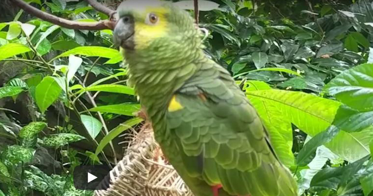 Cosmo, the blue-fronted parrot, lives in the Amazon Gallery at the Vancouver Aquarium, which is a recreation of South America’s tropical rainforest.