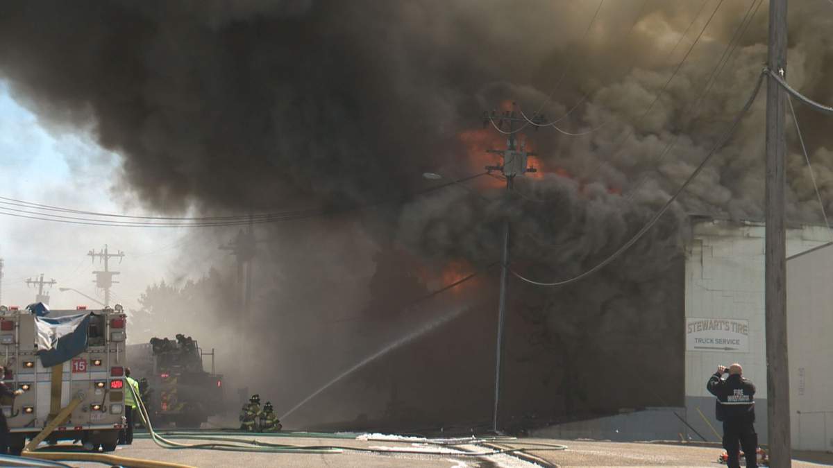 Stewart said at least one of his employees’ vehicles was destroyed in the blaze after a wall near where the vehicles were parked collapsed.