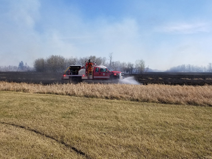 On Saturday, Saskatoon firefighters spent 10 and a half hours battling a grass fire in Corman Park.