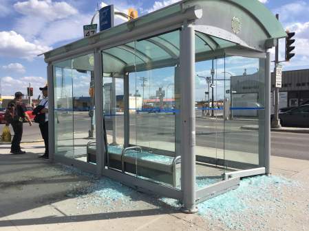 A vehicle crashed into a bus shelter on Monday, injuring one person and tying up traffic.