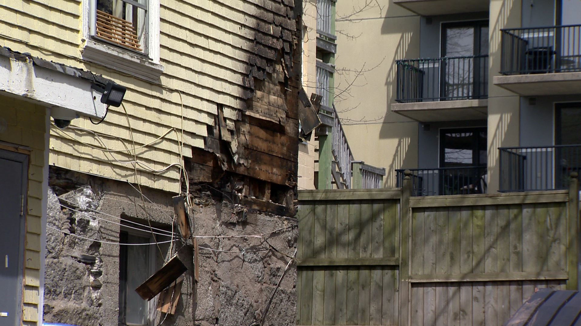 Damaged siding along the building’s northeast corner could still been seen on Wednesday.