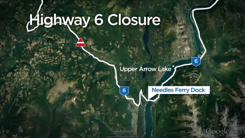 DriveBC is reporting a washout that has closed Highway 6 between Lumby and the Needles ferry.