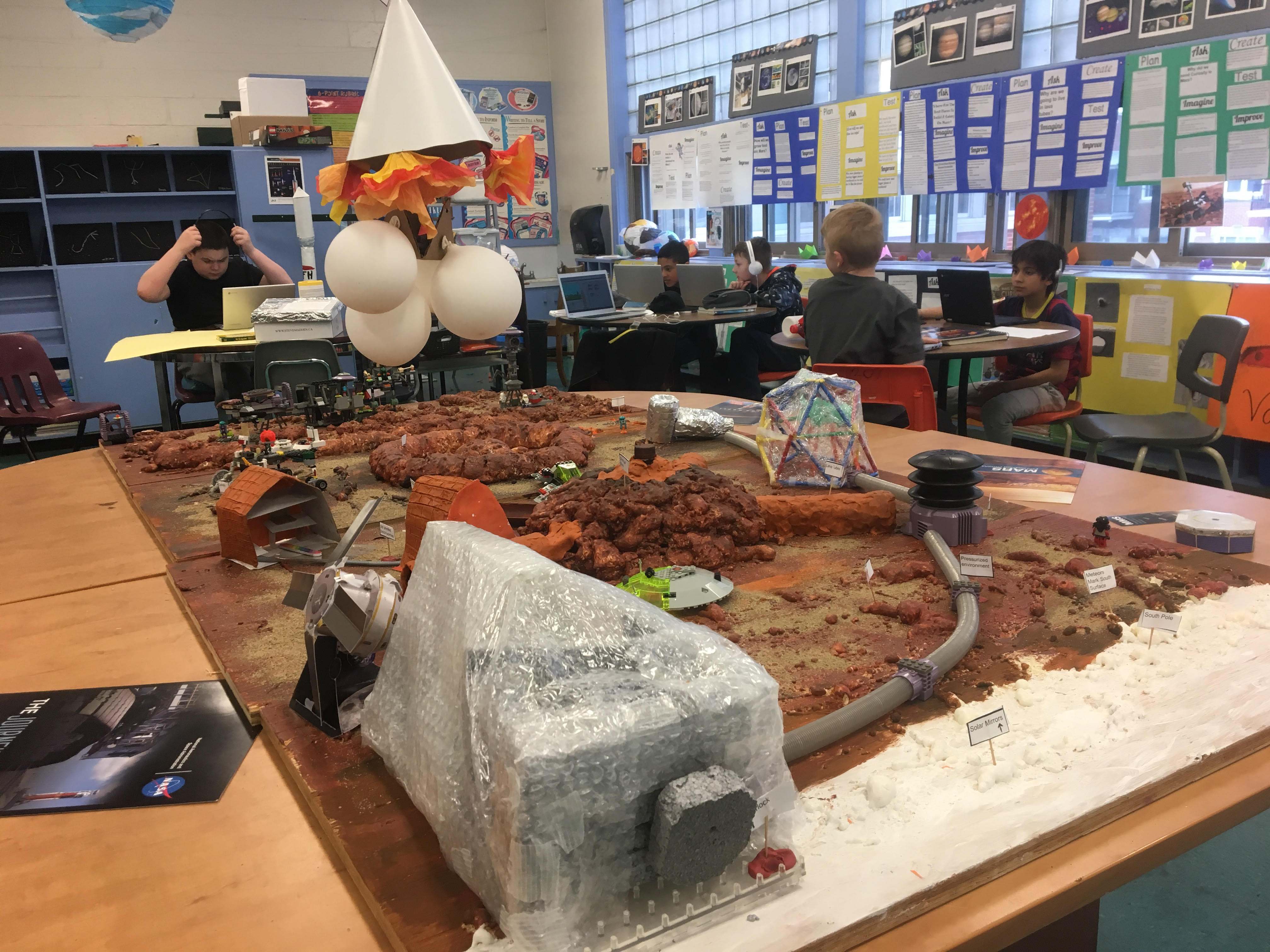 Her classroom is an ode to a future where people live on Mars. It’s complete with a huge model of the red planet made by the students. Connoly-Boutin just came back from NASA to learn the program. She paid her own way.