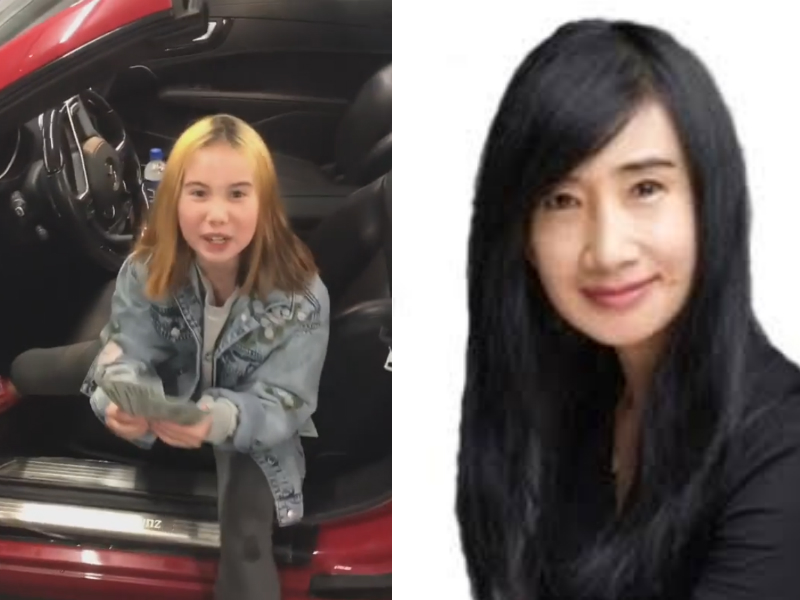 One of those videos shows her daughter Lil Tay, a foul-mouthed, nine-year-old social media star known for flashing money and a high-priced lifestyle — and using inappropriate racial terms — spouting off in a red Mercedes convertible.