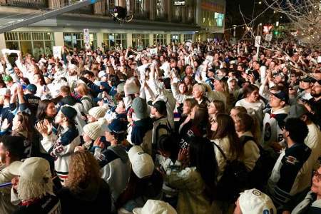 Economic Development Winnipeg said there were roughly 15,000 people at Saturday night’s street party during Game 1 of the NHL’s Western Conference Final series between the Vegas Golden Knights and Jets.