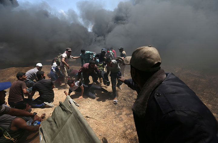 Throughout the day, sirens wailed as the wounded were carried to ambulances. Groups of young activists repeatedly approached the fence, but were quickly scattered by gunfire and tear gas.