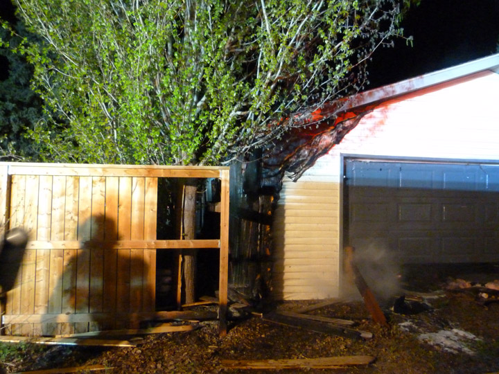 Firefighters called to 319 Wilkinson Cres. just before 2 a.m. CT Tuesday arrived to find smoke coming from the double detached garage and flame on one side.