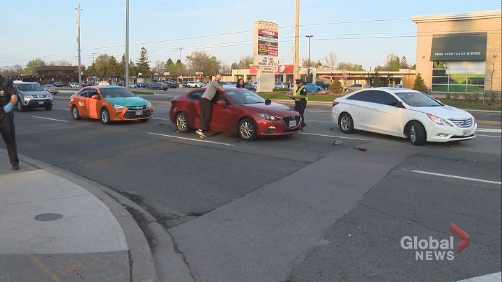 Global News observed at least four vehicles with damage in addition to the suspects’ car.