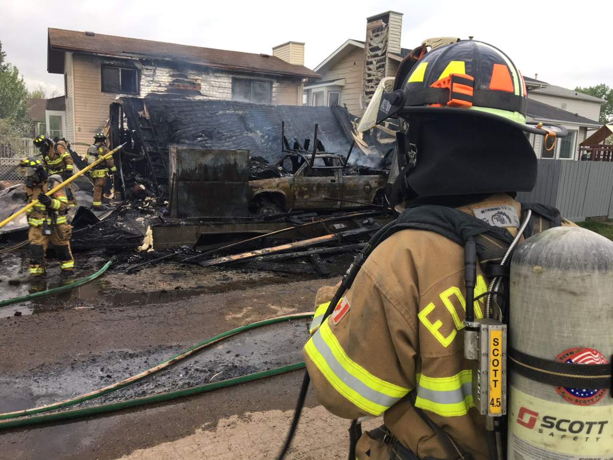 “When we got on scene the garage behind me was fully involved. The fire was under control about a half an hour later,” Edmonton Fire Rescue district chief Randy Shakura said.
