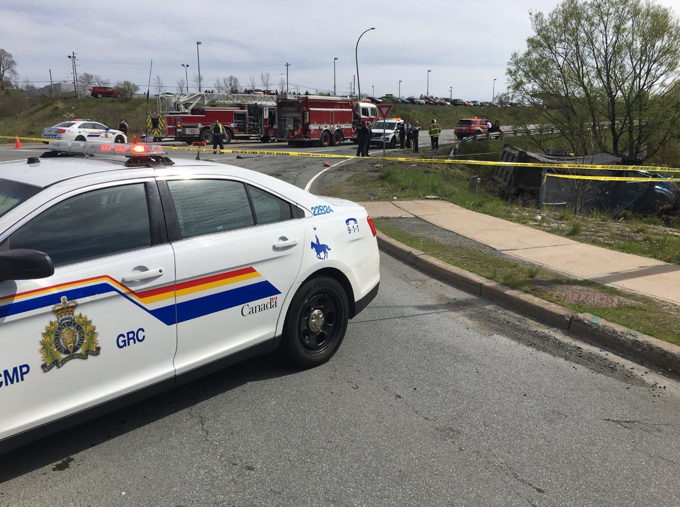 Police say a 28-year-old woman from Lower Sackville, who was a passenger in the car, died at the scene. The driver, a 57-year-old woman from Fall River, was sent to hospital with life-threatening injuries.