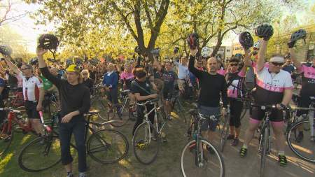 The 7.5-kilometre bike ride began at 6:30 p.m. in Rosemont. It marks one of 23 bike rides happening across Quebec, including in Quebec City, Baie-Comeau, Drummondville and Sherbrooke.