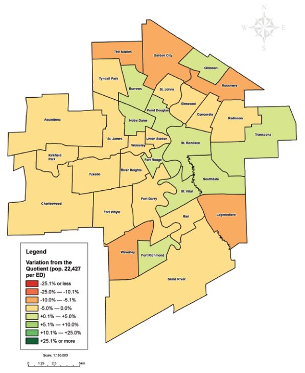“The electoral divisions of Fort Whyte, St. Norbert, The Maples, Southdale, and Rossmere have experienced considerable growth and boundaries needed to be adjusted to balance populations,” the Commission wrote in the report. “The Commission considered current populations and projected growth in developing boundaries.”