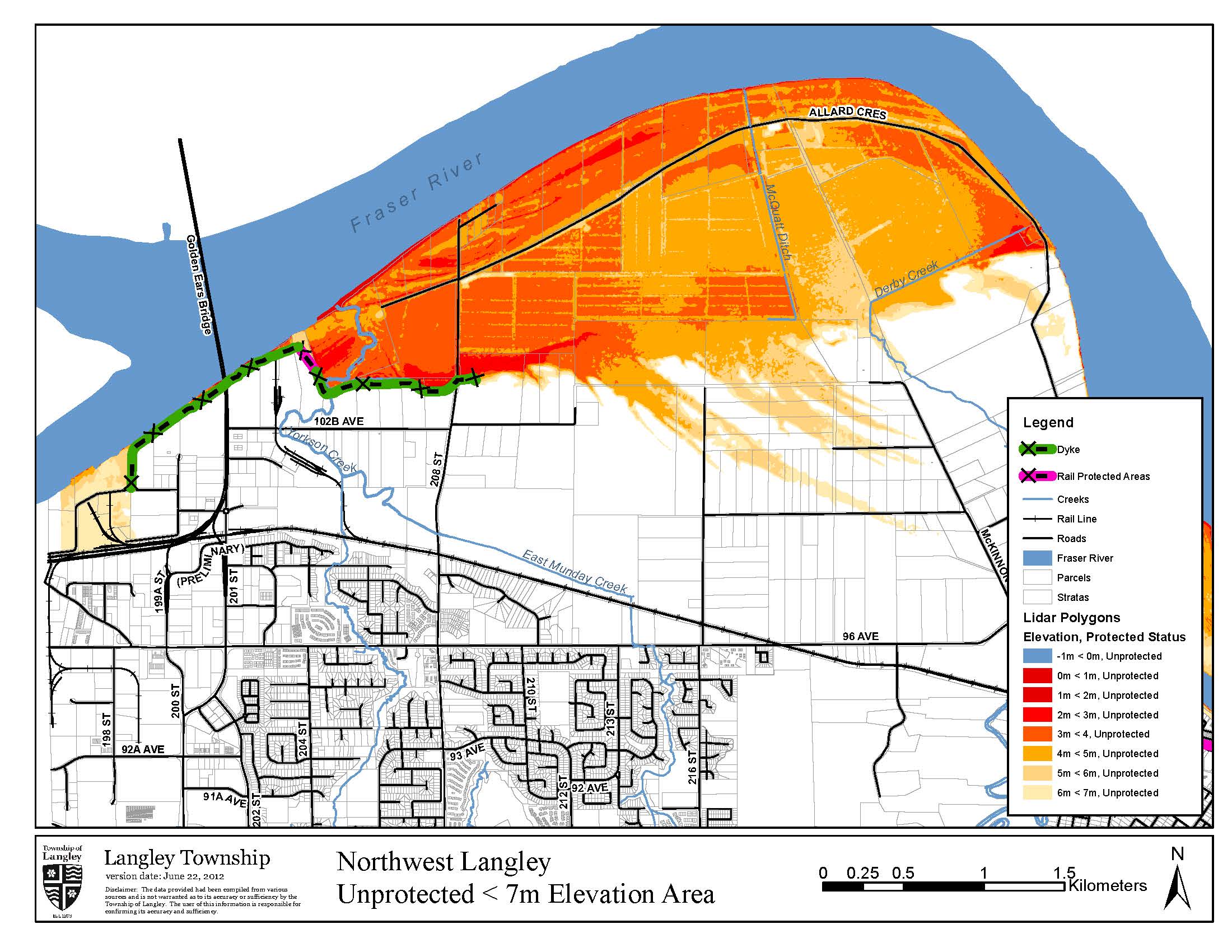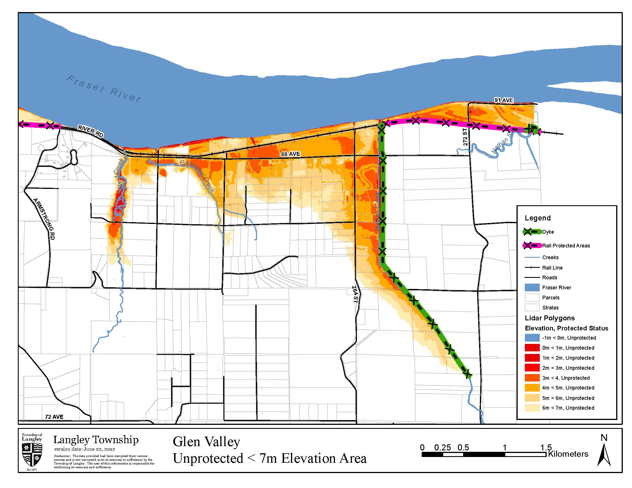 Existing alerts cover unprotected flood plain areas of northwest Langley and Glen Valley, Brae Island and McMillan Island.
