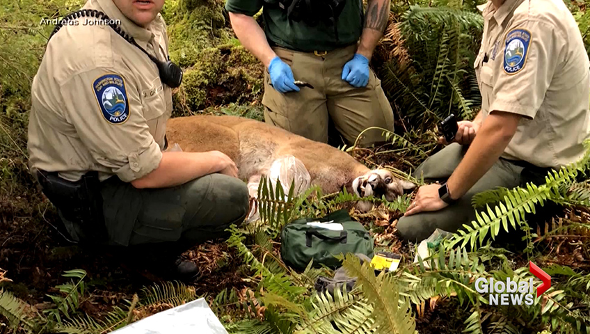Authorities plan to match DNA taken from the animal with DNA from the victims to be certain they killed the right cougar. They sent the animal’s carcass to a veterinary lab at Washington State University for a necropsy to determine what might have been wrong with it.