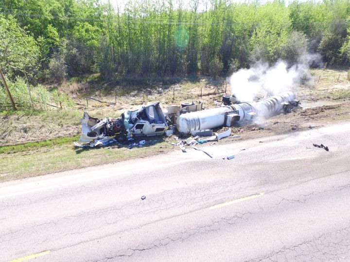 RCMP said the chemical spilled out of the truck, making the highway impassable. It’s not known how much of the chemical was released, but hazardous material technicians were called to the scene to help with the clean up.
